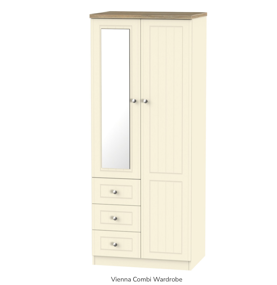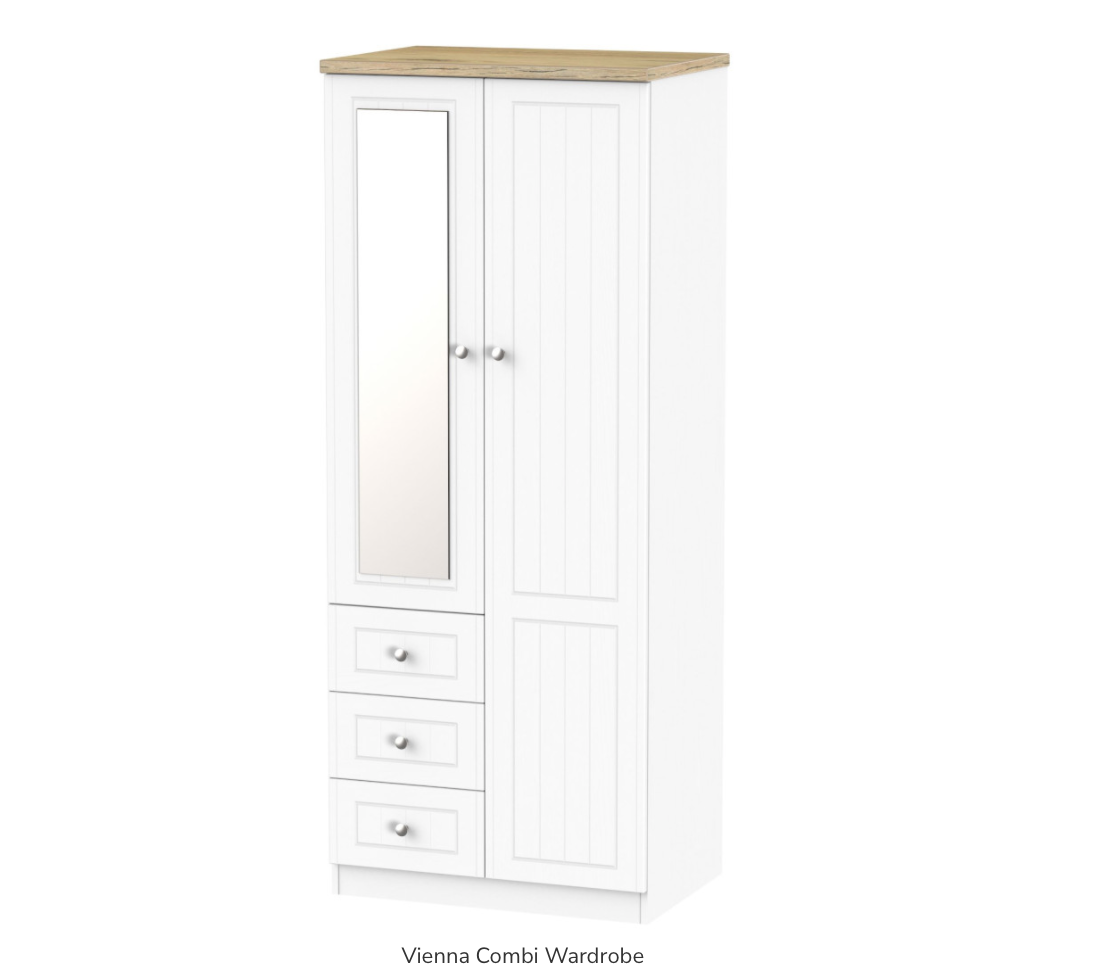 The Vienna Bedroom Furniture Collection is a traditionally designed range with a modern approach that will be ideal for any bedroom with both a classic and contemporary influence. Along with a 28mm Bordeaux Oak Top you have a choice of finishes for your base units. With quality, everlasting drawer runners, this piece has a linen effect on all drawer interiors, as well as a durable scratch resistant vinyl and stylish silver handles for added flair.